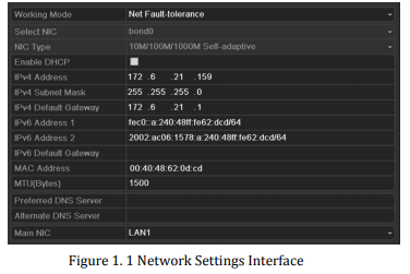 Step:2. Set the IPv4 Address, IPv4 Subnet Mask, IPv4 Gateway and the Preferred DNS Server in the Network Settings menu, as shown in Figure 1.1.