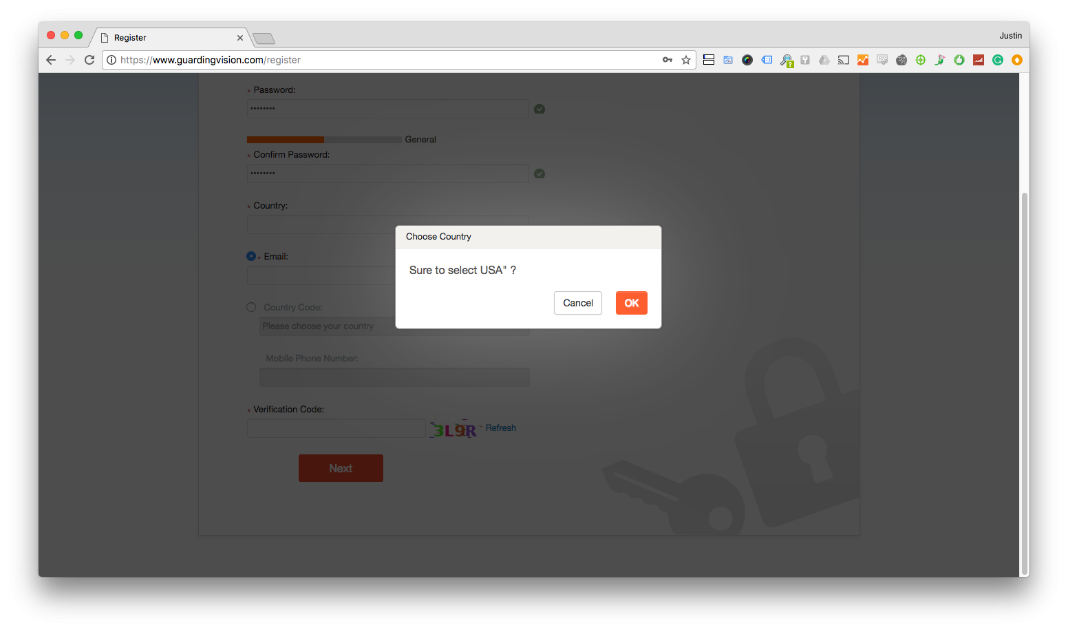 There are two options to create your new Guarding Vision account. You can do this either in a web browser by going to guardingvision.com or inside the Guarding Vision App