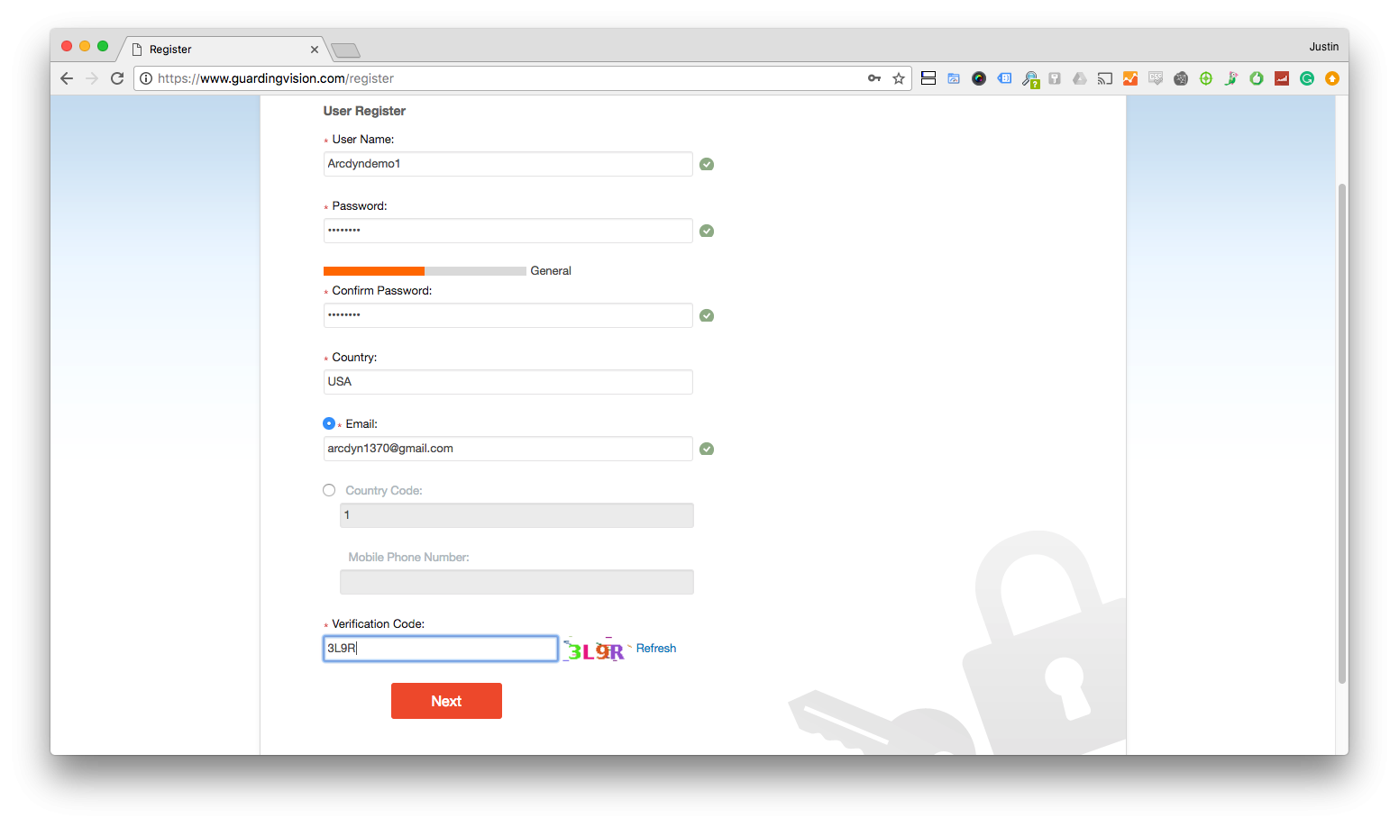 HOW TO CREATE AN ACCOUNT VIA THE GUARDING VISION APP