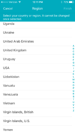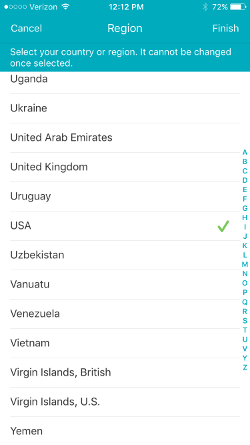 Fill out your desired username, password, and select your country. If you’re in The United States, select ‘America’ across the top, then scroll down to find USA