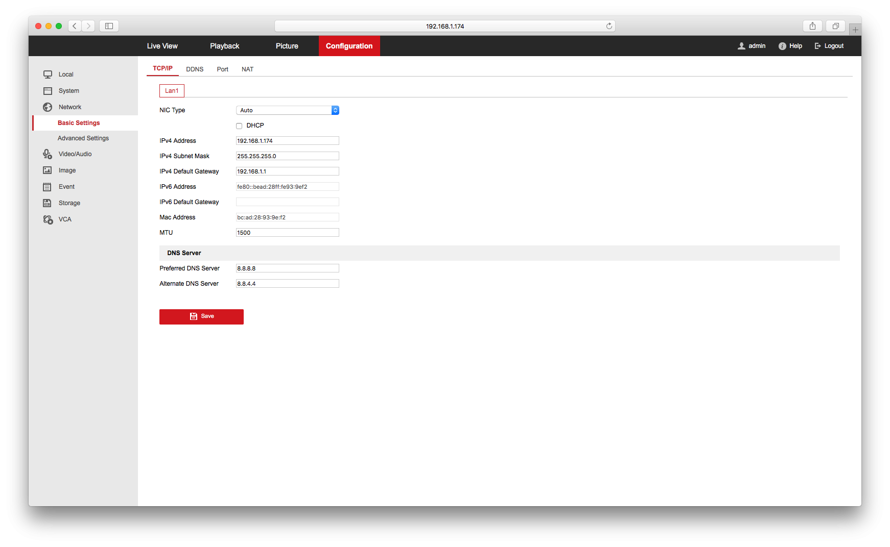 Using Internet Explorer (on PC) or Safari (on Mac) got to the IP Address you’ve assigned to your recorder and Login. If you have not changed the password, the default login info is Username: admin & password: admin12345. We strongly suggest that you change the admin password to something other than the default as default passwords are very insecure.