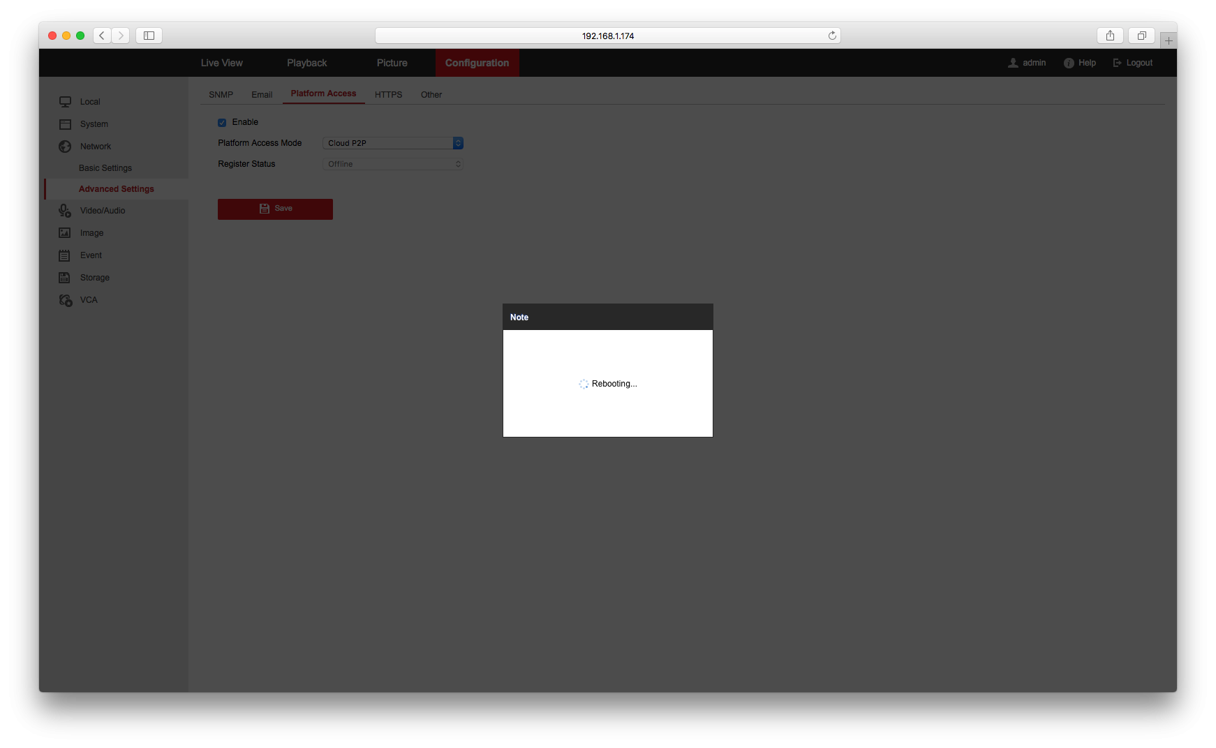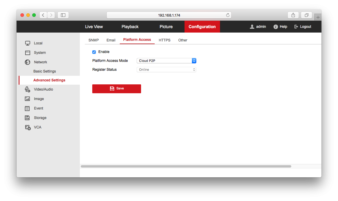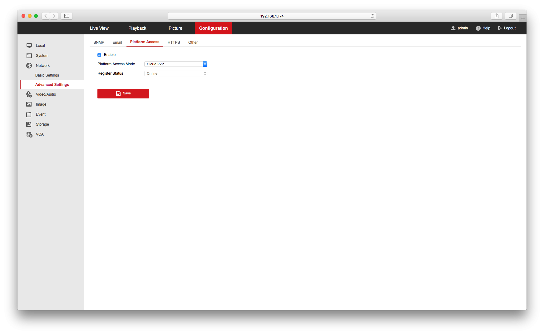 For your device to be able to connect to the cloud viewing platform, you must enable Platform Access