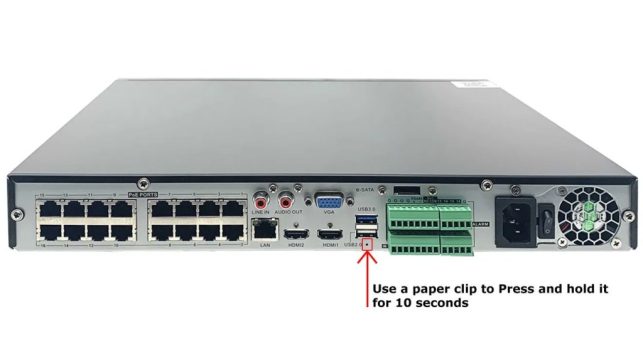 Picture 2 – Reset button of Camius 16 channel NVR [IPVAULT2256PR]
