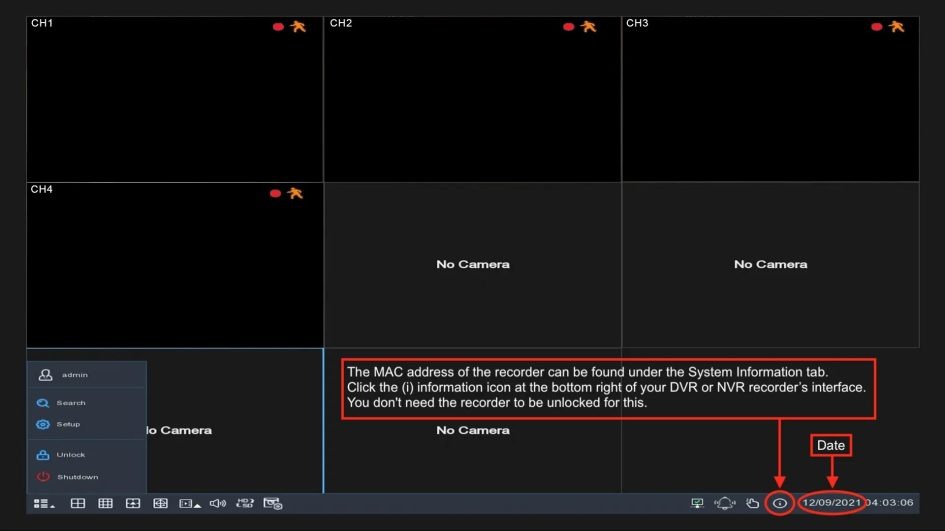 If your DVR digital video recorder or NVR network video recorder doesn’t have a reset button, please follow the below steps to receive a temporary password that is Mac ID and Date sensitive.
