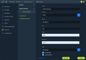 63. It should be possible to bind 2 or more remotely distributed servers each of which is in their own local network using cloud link feature. It should be possible to manage local storage, access camera’s archive, create layouts and receive alarms from all of those binded local servers by 1 or more remote operators.