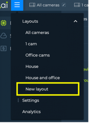 – Layout settings should consist of: layout name field, layout templates, camera list, groups of cameras and save and cancel buttons.