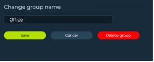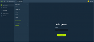 Go to Settings->Cameras->Add group and fill the group name field. Then click “Add”