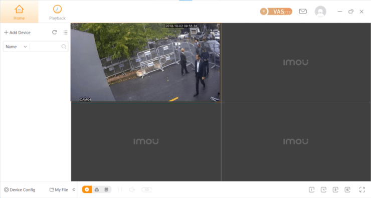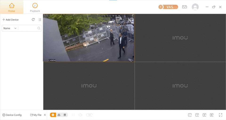 The home screen of the software will appear on the screen, click the “+Add Device” button to add a new camera.
