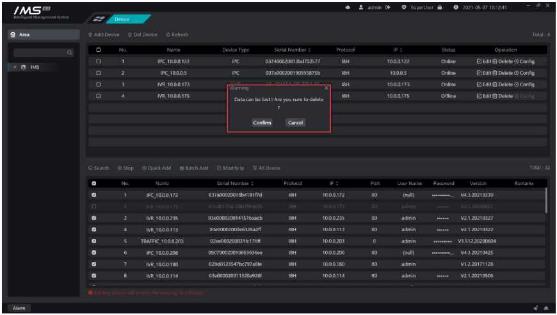 When you delete a device, you also delete data related to the IMS 4.0 client software on the device, such as sending face pictures through IMS 4.0 client software.