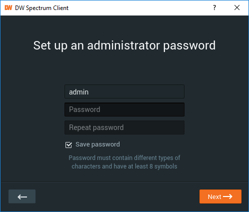 If the DW Spectrum Server is installed on a custom built server (not a DW Blackjack Series NVR), a clean reinstallation of the DW Spectrum Server will be required to reset a forgotten password.