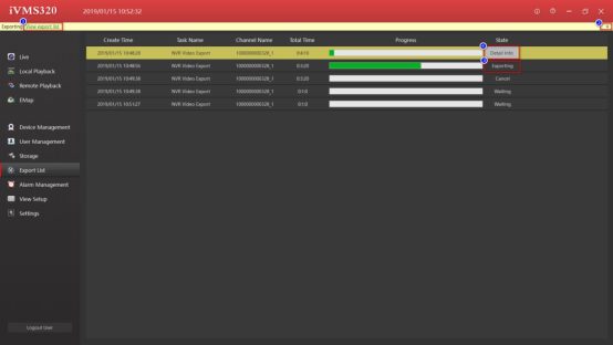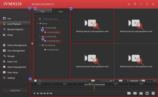 Local Playback is for viewing the video record from the device in local computer. To save the local record, you need to set it in Storage. As long as there’s video record and corresponding information in the database, you can make screenshots, use electronic zoom and export video streams to other formats supported while using playback feature, regardless if the device is online or offline.