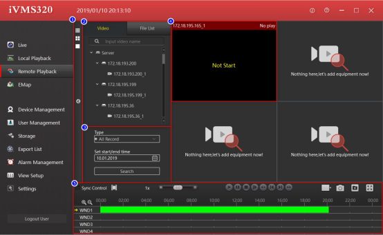 Remote Playback is for viewing the video record from the device memory. This function is similar to Local Playback, but the device must be online for Remote Playblack. You can also make screenshots, use electronic zoom and export video streams to other supported formats while using Remote Playback.