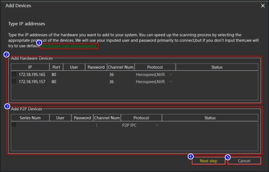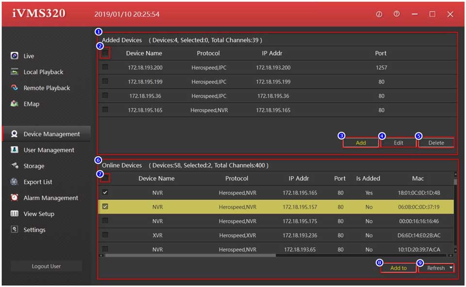 The program will automatically enter into main interface after the super administrator user is successfully added. Next, navigate into the “Device Adding” interface. Please refer to the operation instructions for device adding.