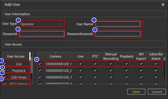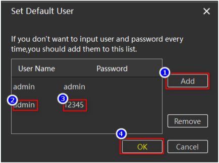 Note: The first added user of system is the Super User. The Super User has the highest authority to operate on other users, but they can not delete related configuration information. For safety, we suggest setting a more complicated password for the Super User.