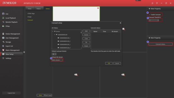@ Set up the carousel Time (SEC), which is the time interval for view carousel. The Default carousel Time in the dialog box, which is the time interval for the device channel carousel.