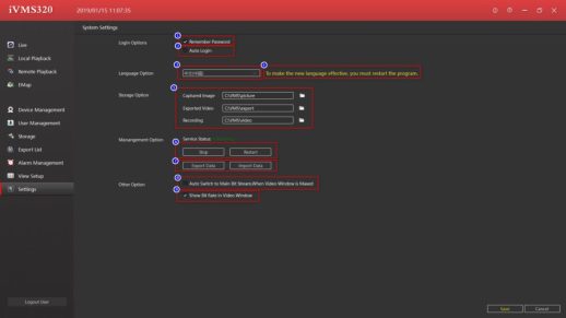 The system settings are used to save the user’s default settings, such as remembering passwords and auto-login, etc. The saved settings are valid only after the software is restarted. The system settings page is shown in Figure 3-7-1.