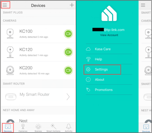 If you have active legacy Kasa Care subscriptions for your Kasa Cameras, you can migrate to the new Kasa Care plan on your Kasa app. To view your options, open the sidebar by tapping the “≡” button in the upper left corner of the Kasa app and select Kasa Care.