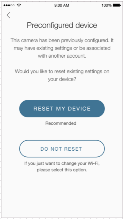 Step 5: You will have an option Reset my Device or Don’t Reset my Device. If you are just changing the wireless network choose Don’t Reset my Device.