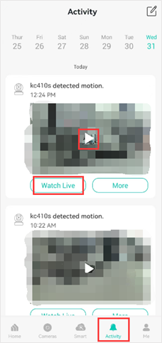 You will be directed to the Live View page of the camera if you tap the Watch Live button.