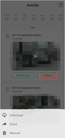 Note: If the camera enjoys the Kasa Care service, the clips uploaded to the cloud server are maintained based on your Kasa Care subscription plan.