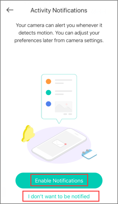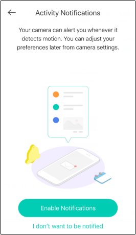 Step 7: Enable Activity Notifications. If you enable this function, your camera can alert you whenever it detects motion. If you don’t want to be notified, click on “I don’t want to be notified”.