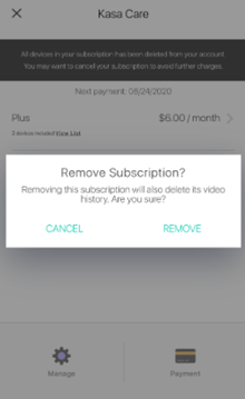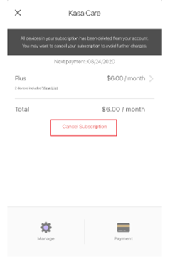 Your Kasa Care subscriptions will automatically renew at the end of the billing cycle unless you choose to cancel the service.