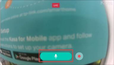 Like a walkie-talkie, you can use a Kasa Camera to communicate with those around the camera. Simply press and hold the microphone button in the Kasa app. Once you hear the chime you can begin to speak. Release the button to allow for the other person to respond.