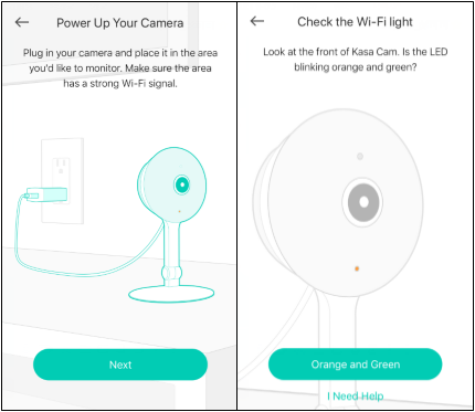 Step 3: Follow the instruction on the Kasa app to power on the Kasa Cam, and wait for the light to blink orange and green.