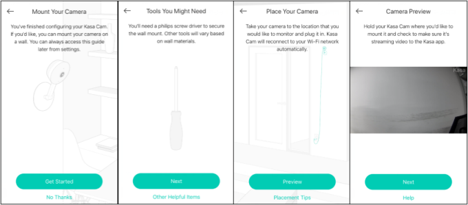 Step 8: Follow the instruction to mount your camera. If you do not want to do it now, click on “No Thanks”, and we have completed the setup of Kasa Cam.