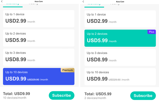 Please note that once you’ve completed all the steps of “Upgrade to New Plans” or “Cancel Subscription,” you cannot purchase the legacy Kasa Care plans again.