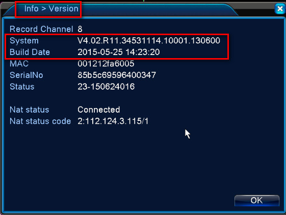 Here you can check the system’s current firmware build date. After upgrading, you can check if the build date changed.