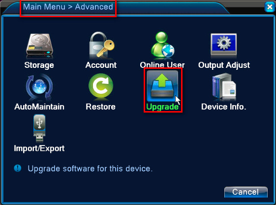 There are 2 methods to upgrade the firmware of DVR/NVR. We suggest you use method 1. Please contact technical support to get an upgrading file first.