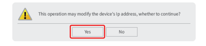 Tap YES on the pop-up window of “This operation may modify the device’s IP address, whether to continue?”