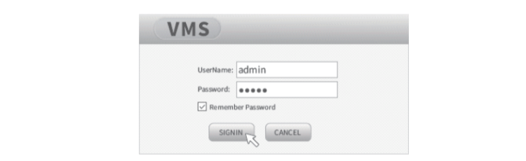 The VMS Client cannot load the password of the DVR system automatically, you need to modify it by clicking .
