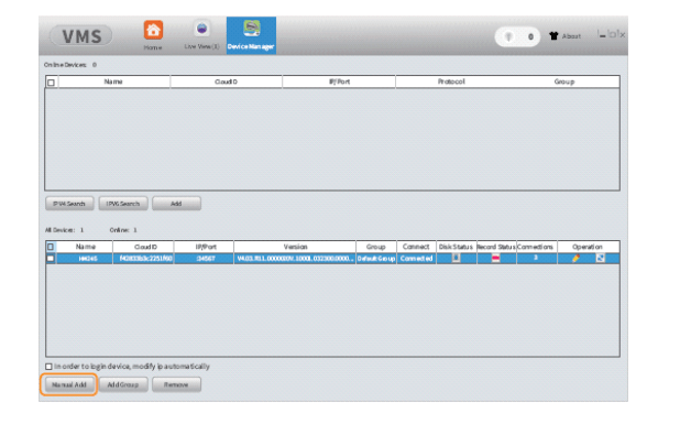 Click Manual Add at the lower left corner on the interface of Device Manager.