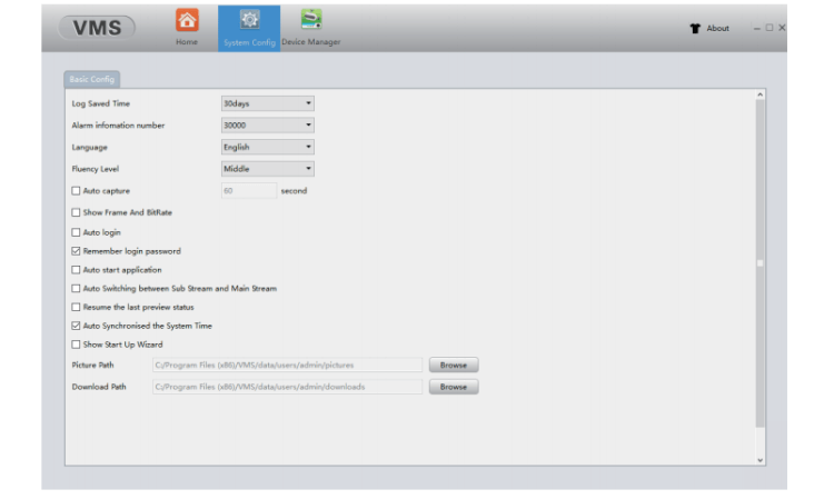 You can go to Home > OPERATION > Record Settings to set the disk in which the video will be saved for VMS Client.