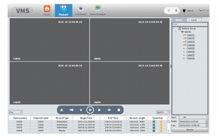 Check the box before the channel(s) you prefer, select Type of the video, select the Begin and End time, then click Search to list the filtered videos.