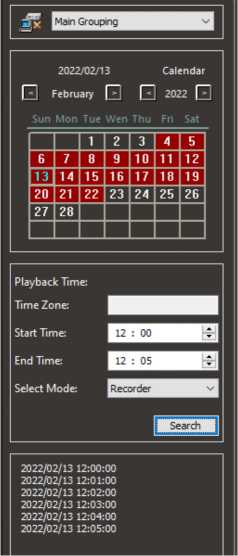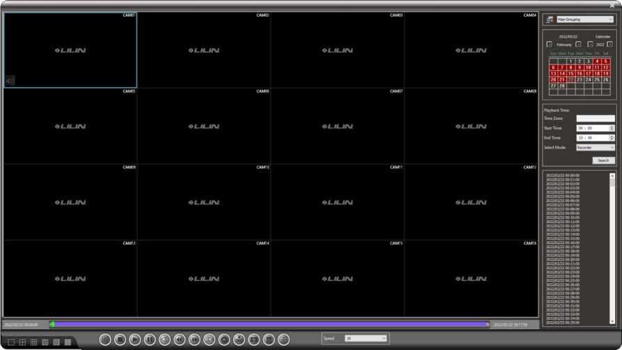 1) To access playback through Client, simply click the icon below, which can be found on the top menu bar. This will load the multi-channel playback feature.