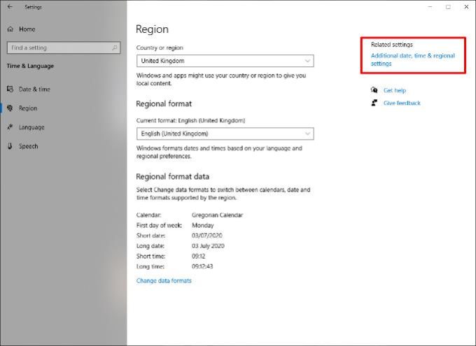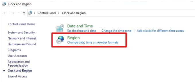 4) Within ‘Region Settings’ select ‘Additional date, time & region settings’