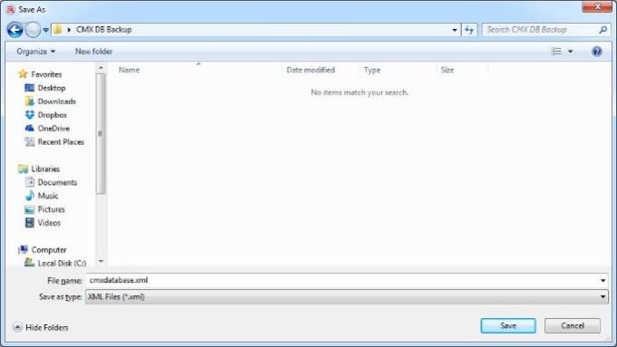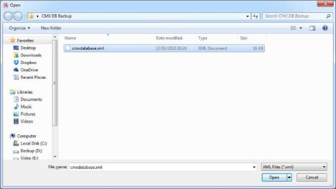 Now select the cmxdatabase.xml file that was saved to a safe location when the export process was performed.