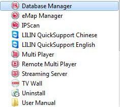 Click ‘Start’ select ‘All Programs’ then select ‘LILIN Navigator. Under this category select ‘Database Manager’.