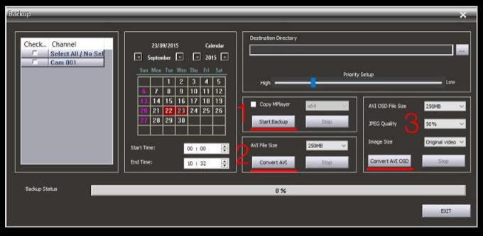 This is the recommended backup type to use. Once downloaded these files are locked so they can not be edited or manipulated in any way. These files are also fully time and date stamped. Multiple backups of different channels can be placed in the same folder location and the MPlayer software will index these files and play them back concurrently on one screen with an option to put each channel in full screen, all dates backed up are also displayed in a handy calendar. AVI files can also be created subsequently if this backup file type is used. This is also the quickest backup method.