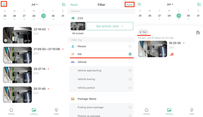 You can quickly filter out all videos of dropped-off/picked-up/delivered packages by only selecting the corresponding tag.
