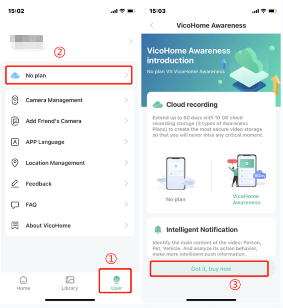 If you want to try the AI recognition feature, please click “No plan” in “User“.