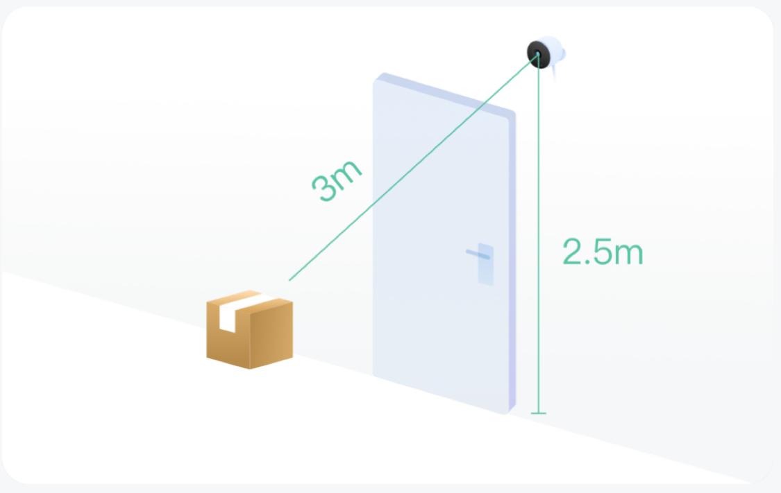 It is recommended to place your camera at a height of about 8 feet( 2.5 meters) and tilt it so that you can see the area where the package is located.