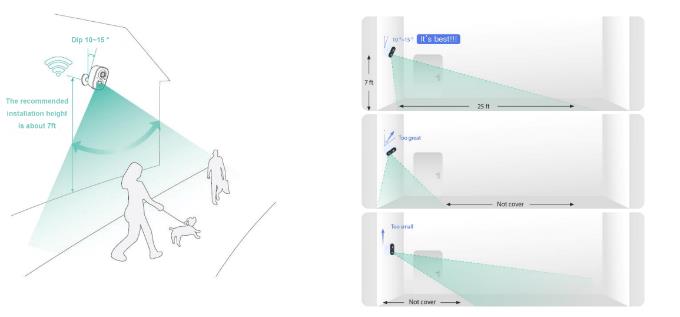 🟠 Typically, home cameras are placed in the corners of the room to optimize the viewing angle. LongPlus recommends at least two cameras to fully cover a large space, such as a living room. To fully monitor your home, users can add cameras in each room to achieve a complete home monitoring system.