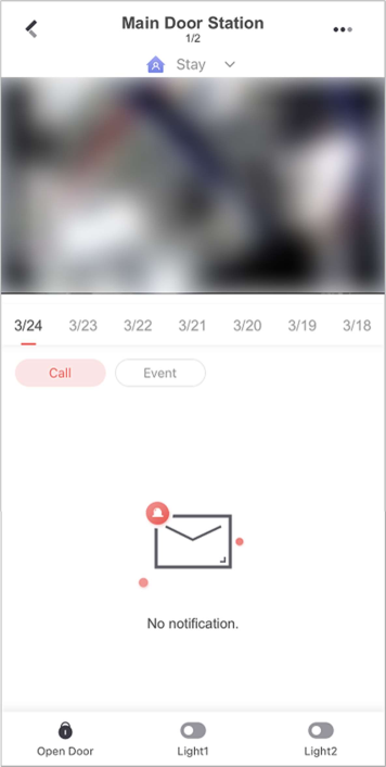 You can check event notifications on the Notification page when events are detected by the devices. The unread notifications are marked with a red dot.