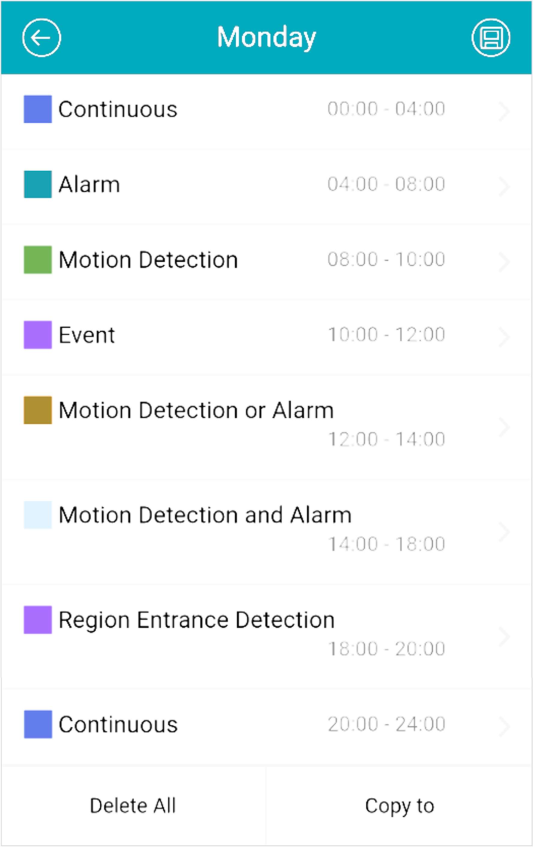 You can allow the Mobile Client to receive and push notifications of the events detected by a device. If you want to block notifications during specific time, you can set a notification schedule to define the time period(s) during which the Mobile Client is allowed to receive event information and push them to you. You can also set notification mode to avoid the disturbance of push notifications (and the audio and strobe light alarm) while still being able to receive event information on the Notification page.