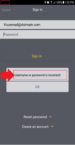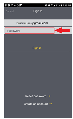 - Return to the app and enter the reset code into the password field. Then tap Sign in.
