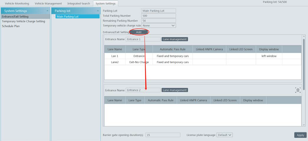 Barrier Open Duration: For example, set to 15s. Then the barrier gate will close automatically after it is opened for 15s.